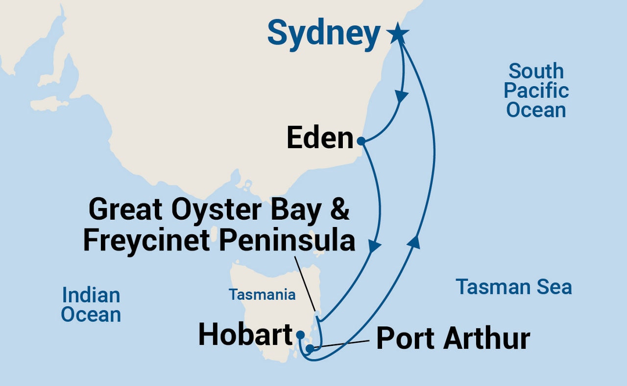 Sydney, Eden, Great Oyster Bay & Freycinet Peninsula, Hobart, Port Arthur, Sydney