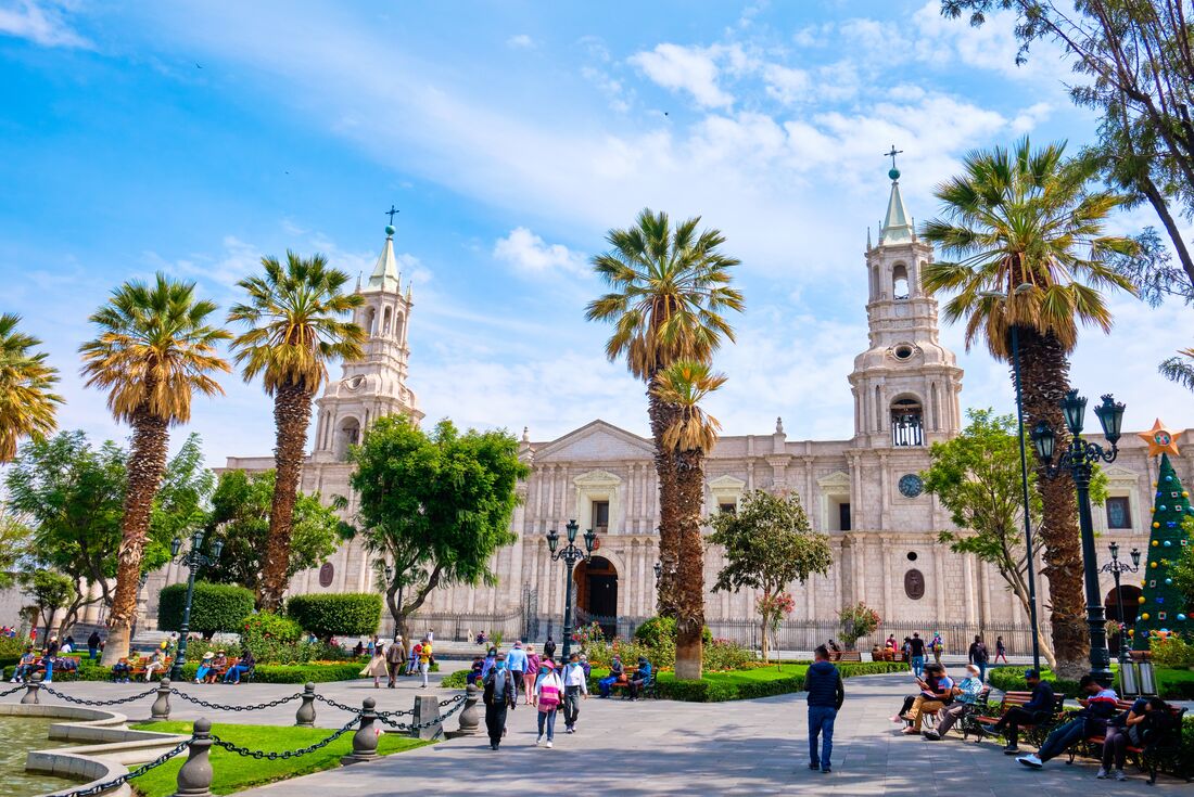 Leave Nazca behind this morning and travel to Arequipa in a private vehicle. Standing at the foot of El Misti Volcano and filled with baroque buildings, Arequipa vies with Cusco for the title of Peru's most attractive city. Built out of a pale volcanic rock called sillar, the old buildings dazzle in the sun, giving the city its nickname – the 'White City'. Upon arrival, maybe take a stroll to stretch your legs after a long driving day – the main plaza, with its cafes and nearby cathedral, is lovely to wander.