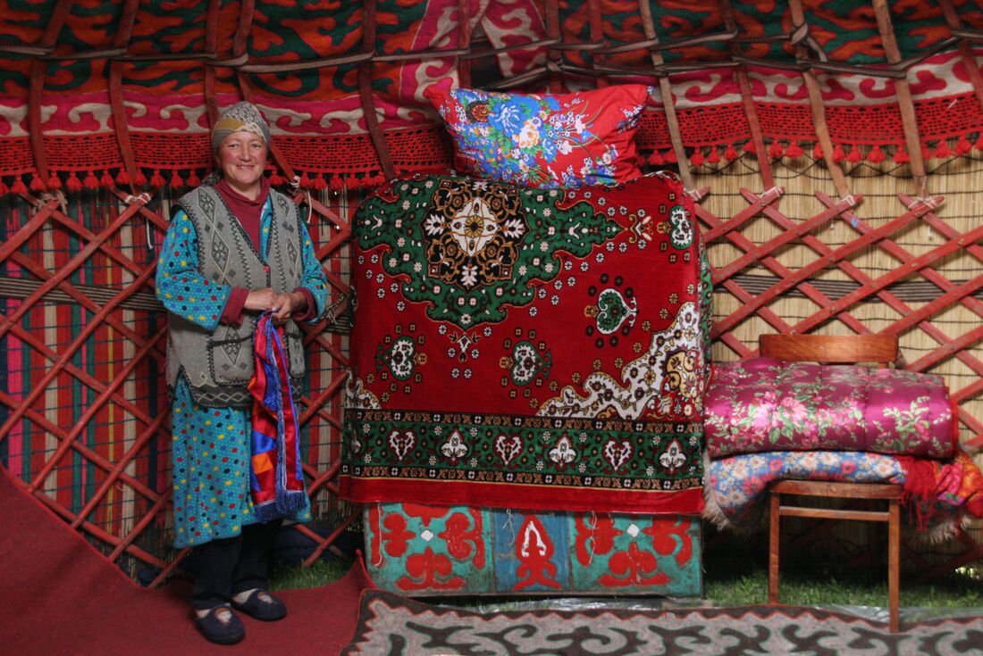 Embark on a half-day city tour of downtown Bishkek today. Meet with a local Bishkek guide and head out to see Ala-Too Square and the statue of Manas – the hero of heroes for the local Kyrgyz people. See the Russian Orthodox church, one of the only few Lenin statues left in all the ex-USSR countries, Oak Park (the oldest park in the country), the Opera house and Victory Square, with its eternal flame dedicated to WW2. After some free time to rest and recharge, head out to meet a local designer, craftsman and design historian to learn about Central Asian textile design and manufacturing. Tonight, join your group for dinner in Bishkek.