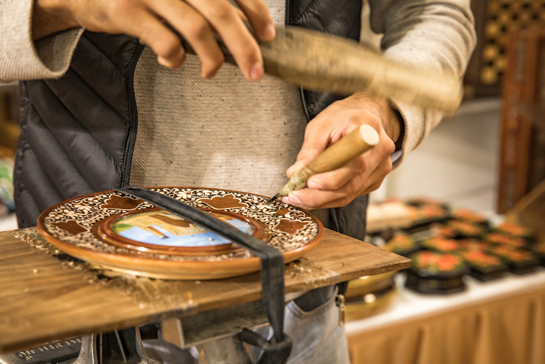 Early this morning, take a high-speed Afrosiab train to the ancient Silk Road hub of Samarkand. The city has long been a centre of artisans and traders as well as the prize for many a conquering army, leaving behind a rich and complex history. When you arrive, stop by the gorgeous remains of the Ulugbek Observatory – built by a Muslim prince, your leader will explain how this unpopular ruler had a controversial passion for astronomy. After, explore the Afrosiab Museum – home to a treasured 7th-century fresco of the Sogdian King Varkhouman. Then, head to the workshop of a local artisan in Konigil to discover one of the few people in Central Asia who continues to produce paper using a 1000-year-old method. This village is home to the Meros paper mill, founded by well-known masters, the Mukhtarov brothers. Thanks to their efforts, the local factory revived an ancient tradition based on old Samarkand technologies. You'll also see a ceramics workshop, then you can enjoy a free evening to explore Samarkand at your own pace.